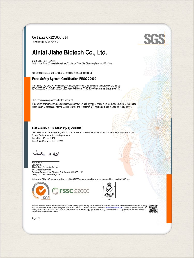 汕頭佳禾生物科技有限公司是一家致力于氨基酸及其衍生物研發(fā)、生產(chǎn)和銷售的國(guó)家高新技術(shù)企業(yè),先后通過了國(guó)家藥品GMP認(rèn)證,ISO9001質(zhì)量體系認(rèn)證、ISO14001環(huán)境管理體系認(rèn)證。目前,公司擁有“廣東省專精特新中小企業(yè)”、“廣東省氨基酸產(chǎn)品工程技術(shù)研究中心”、“汕頭市生物發(fā)酵工程技術(shù)研究開發(fā)中心”、“汕頭市知識(shí)產(chǎn)權(quán)優(yōu)勢(shì)企業(yè)”、“多項(xiàng)國(guó)家發(fā)明專利”、“廣東省守合同重信用企業(yè)”等多項(xiàng)資質(zhì)和榮譽(yù),旗下“佳禾牌”系列產(chǎn)品已成為原料藥行業(yè)知名品牌。 新泰市佳禾生物科技有限公司成立于2012年8月,注冊(cè)資金2億元,公司位于山東泰安新泰市新汶工業(yè)園區(qū),是國(guó) 家級(jí)高新技術(shù)企業(yè)、山東省“專精特新”企業(yè)、山東省制造業(yè)單項(xiàng)冠軍企業(yè)、泰安市科技型中小企業(yè)、泰安市農(nóng)業(yè)產(chǎn)業(yè)化龍頭企業(yè)、中國(guó)生物發(fā)酵產(chǎn)業(yè)協(xié)會(huì)理事單位。